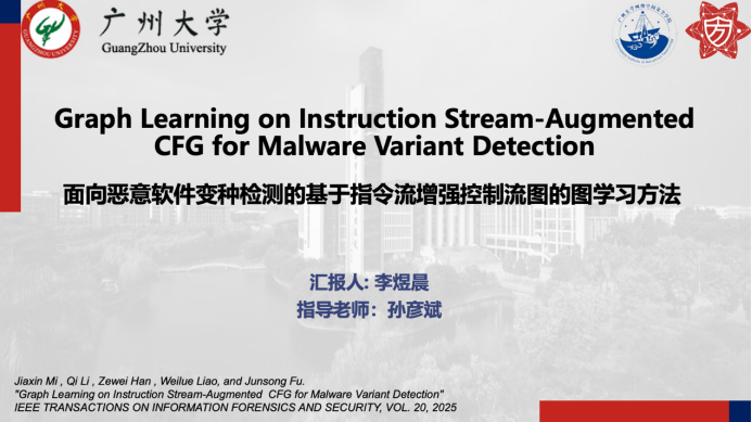 报告题目:【面向恶意软件变种检测的基于指令流增强控制流图的图学习方法】