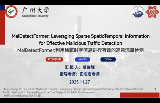 报告题目:【MalDetectFormer:利用稀疏时空信息进行有效的恶意流量检测】