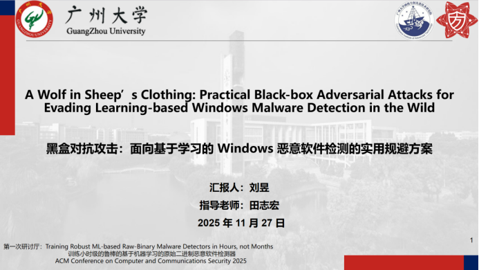 报告题目:【黑盒对抗攻击:面向基于学习的 Windows 恶意软件检测的实用规避方案】