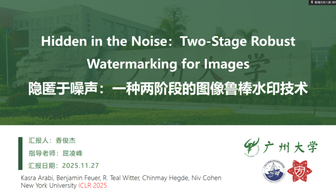 报告题目:【Hidden in the Noise:Two-Stage RobustWatermarking for Images】