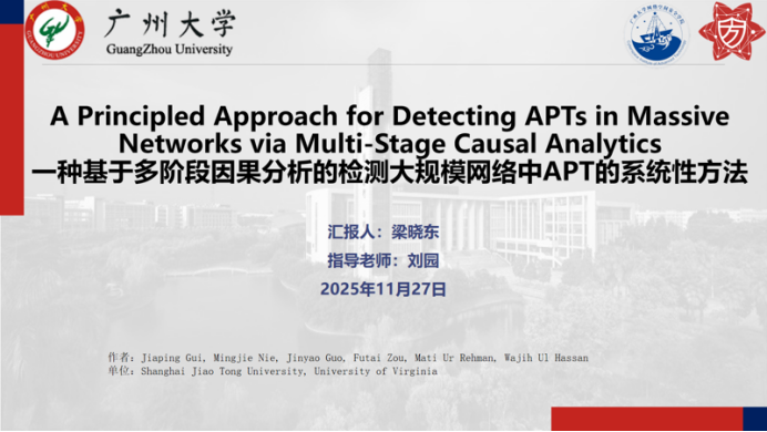 报告题目:【A Principled Approach for Detecting APTs in MassiveNetworks via Multi-Stage Causal Analytics】