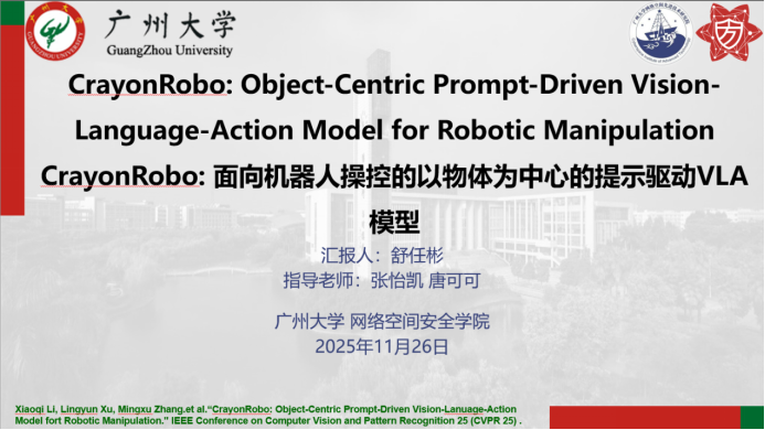 报告题目:【CrayonRobo:面向机器人操控的以物体为中心的提示驱动视觉-语言-动作模型】