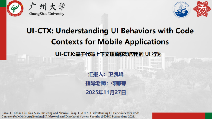 报告题目:【UI-CTX:基于代码上下文的移动应用UI行为理解】