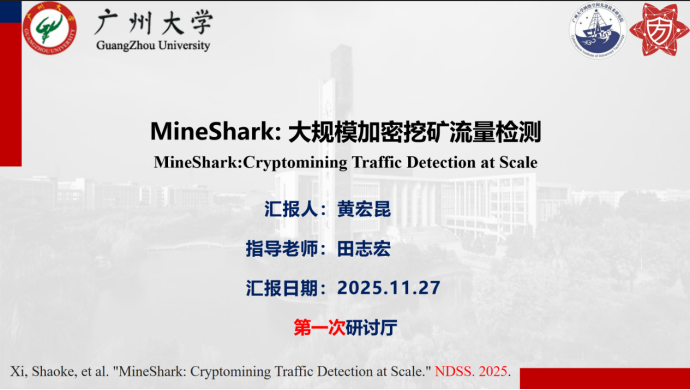报告题目:【MineShark:大规模加密挖矿流量检测】