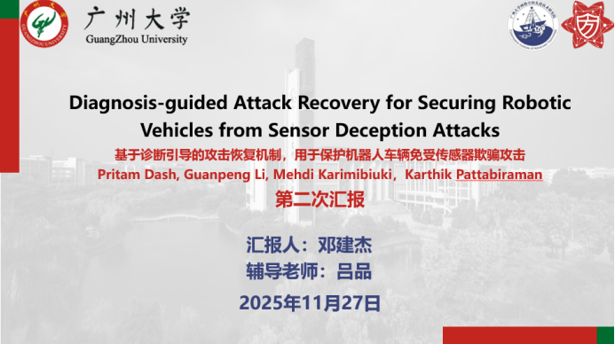 报告题目:【基于诊断引导的攻击恢复机制,用于保护机器人车辆免受传感器欺骗攻击】·