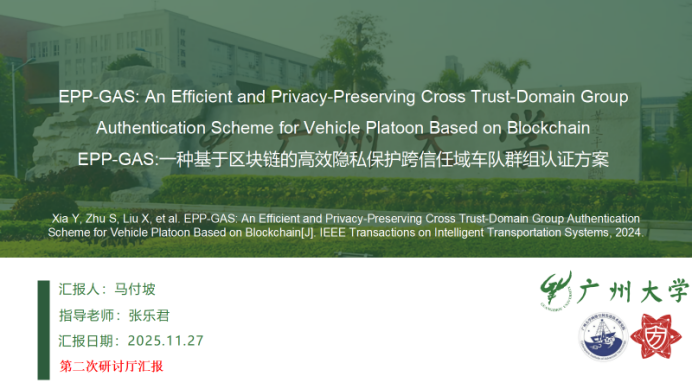 报告题目:【EPP-GAS:一种基于区块链的高效隐私保护跨信任域车队群组认证方案】