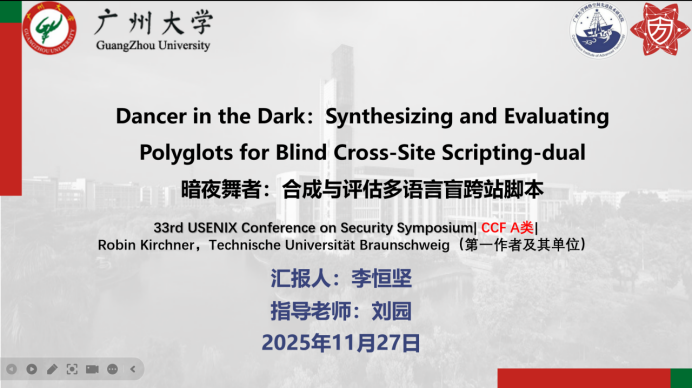 报告题目:【暗夜舞者:合成与评估多语言盲跨站脚本】