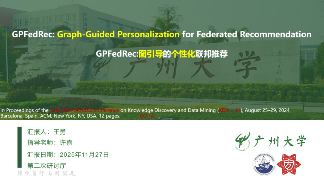 报告题目:【GPFedRec:图引导的个性化联邦推荐】