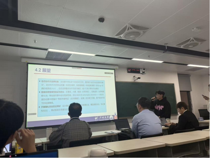 1、同学汇报清晰、对论文钻研深入,PPT内容覆盖较好。在讨论环节,老师们围绕论文的实际应用价值、创新性和研究意义进行了深入探讨,并指出论文未涉及的更复杂、隐藏式攻击检测可作为后续独立研究方向。