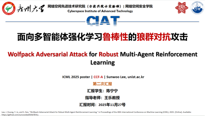 报告题目:【Wolfpack Adversarial Attack for Robust Multi-Agent ReinforcementLearning】