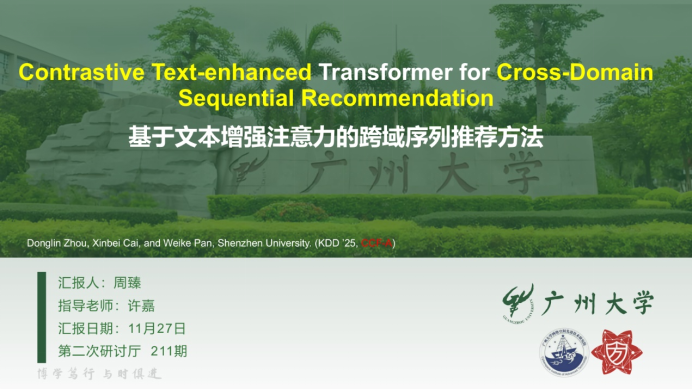 报告题目:【基于文本增强注意力的跨域序列推荐方法】