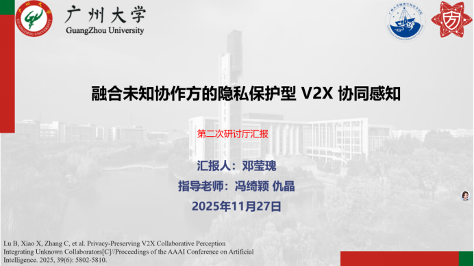 报告题目:【融合未知协作方的隐私保护型 V2X 协同感知】