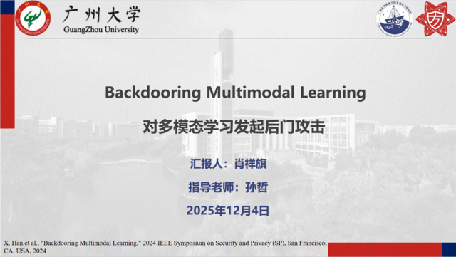 报告题目:【对多模态学习发起后门攻击】