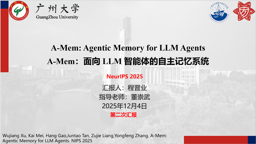 报告题目:【A-Mem:面向 LLM 智能体的自主记忆系统】