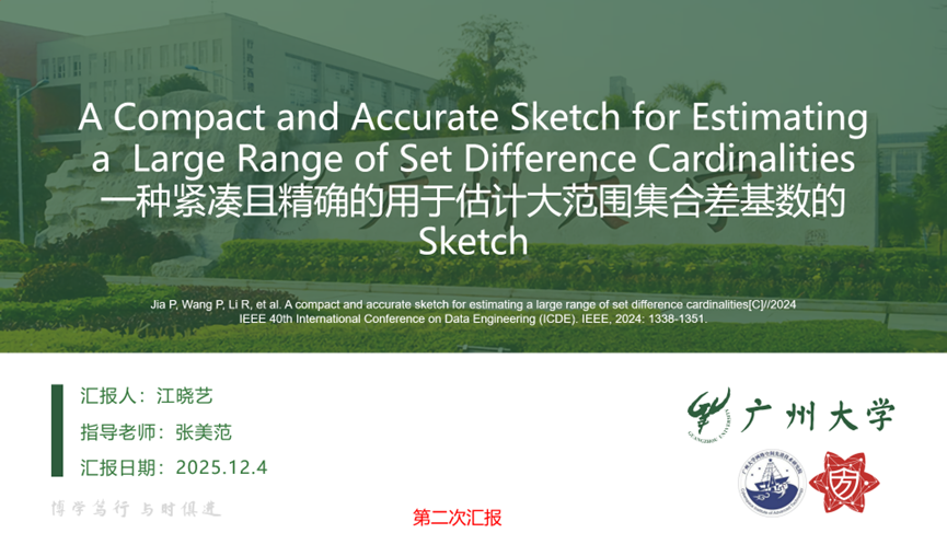 报告题目:【一种紧凑且精确的用于估计大范围集合差基数的Sketch】