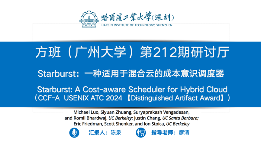报告题目:【Starburst:一种适用于混合云的成本意识调度器】