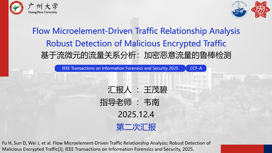 报告题目:【基于流微元的流量关系分析:加密恶意流量的鲁棒检测】