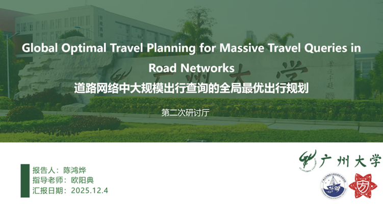 报告题目:【道路网络中大规模出行查询的全局最优出行规划】