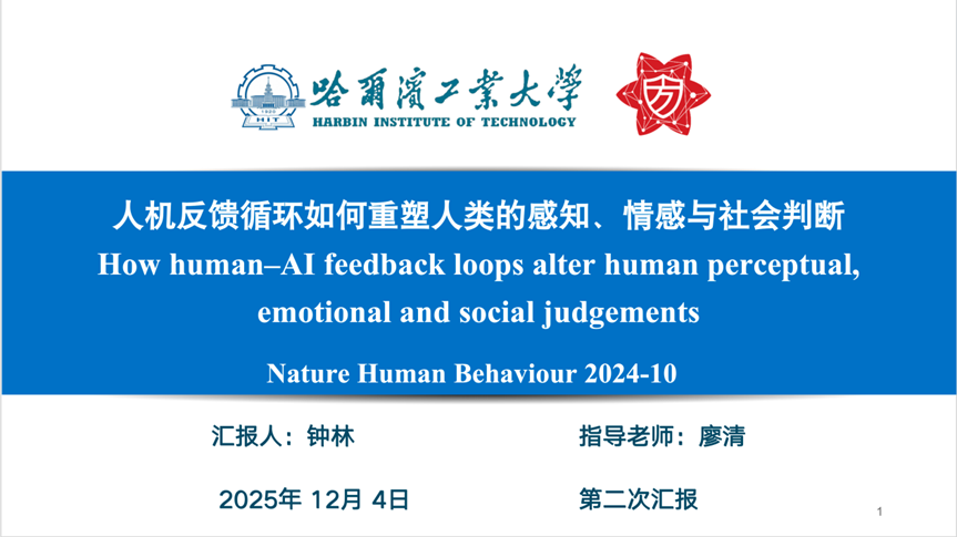 报告题目:【人机反馈循环如何重塑人类的感知、情感与社会判断】