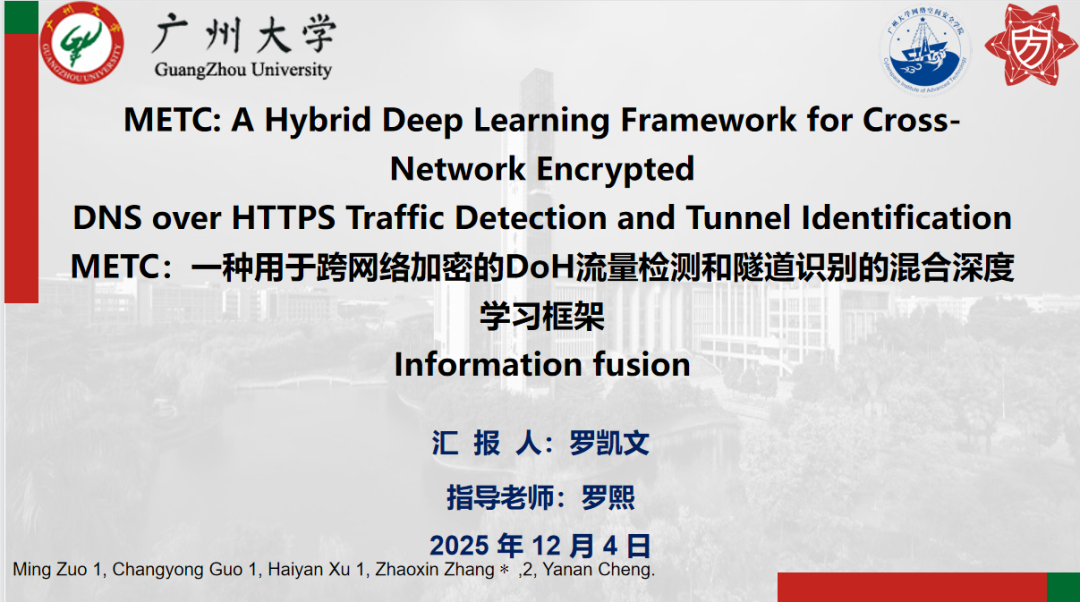 报告题目:【Multi-ARCL:面向加密流量分类的多模态自适应中继分布式持续学习】