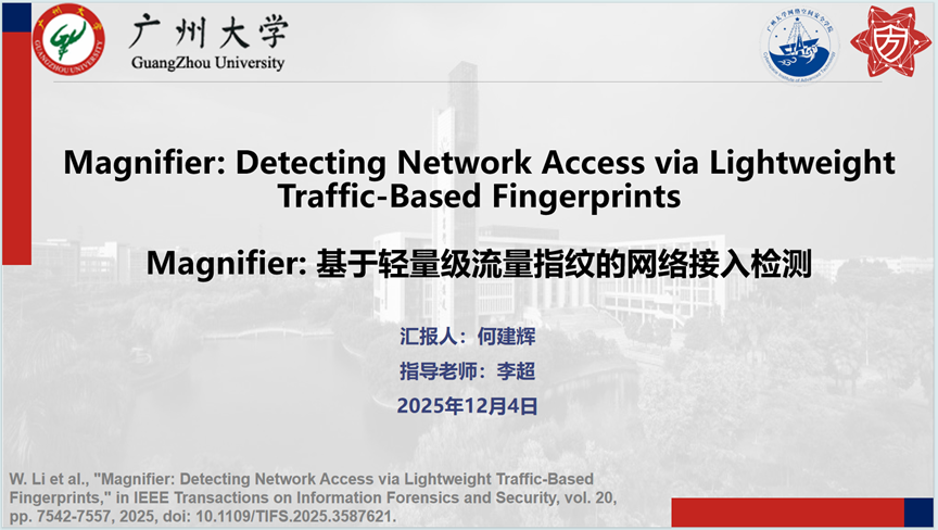 报告题目:【Magnifier: 基于轻量级流量指纹的网络接入检测】