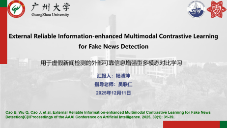 报告题目:【用于虚假新闻检测的外部可靠信息增强型多模态对比学习】