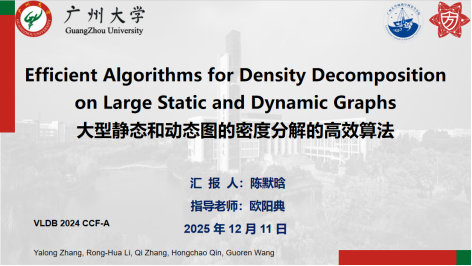 报告题目:【大型静态和动态图的密度分解的高效算法】