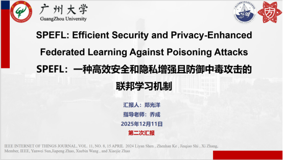 报告题目:【SPEFL:一种高效安全和隐私增强且防御中毒攻击的联邦学习机制】