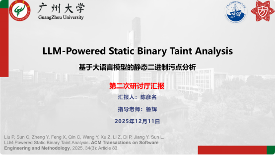 报告题目:【基于大语言模型的静态二进制污点分析】