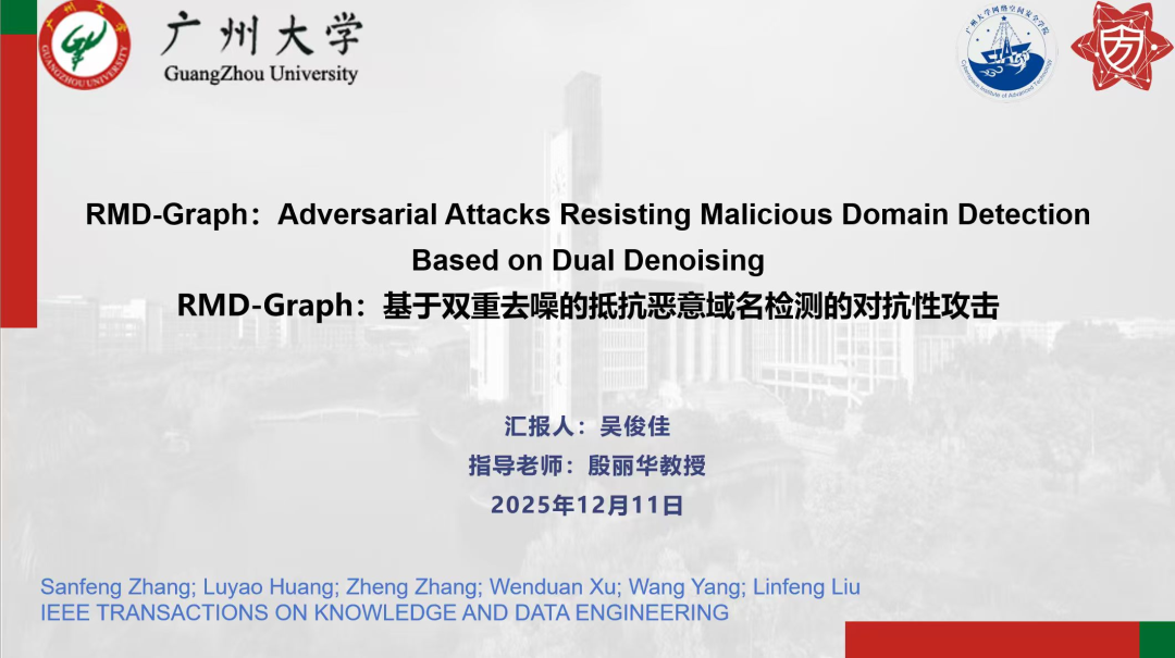 报告题目:【RMD-Graph:基于双重去噪的抵抗恶意域名检测的对抗性攻击】