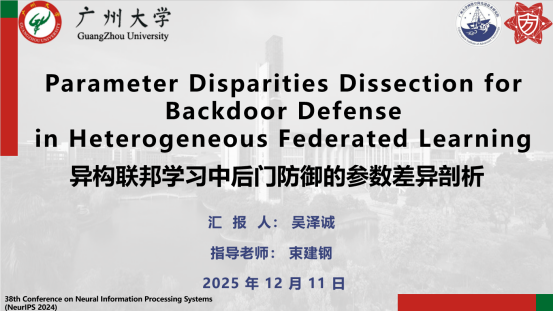 报告题目:【异构联邦学习中后门防御的参数差异剖析】