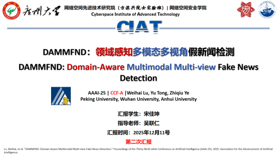 报告题目:【DAMMFND:领域感知多模态多视角假新闻检测】