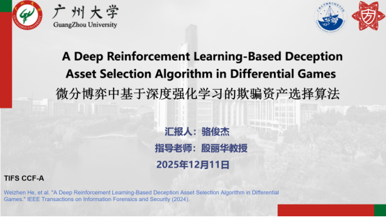 报告题目:【微分博弈中基于深度强化学习的欺骗资产选择算法】