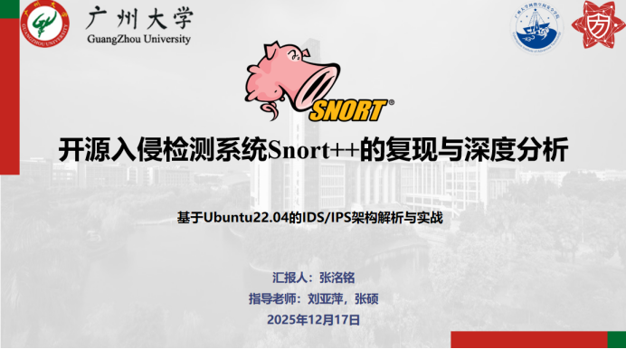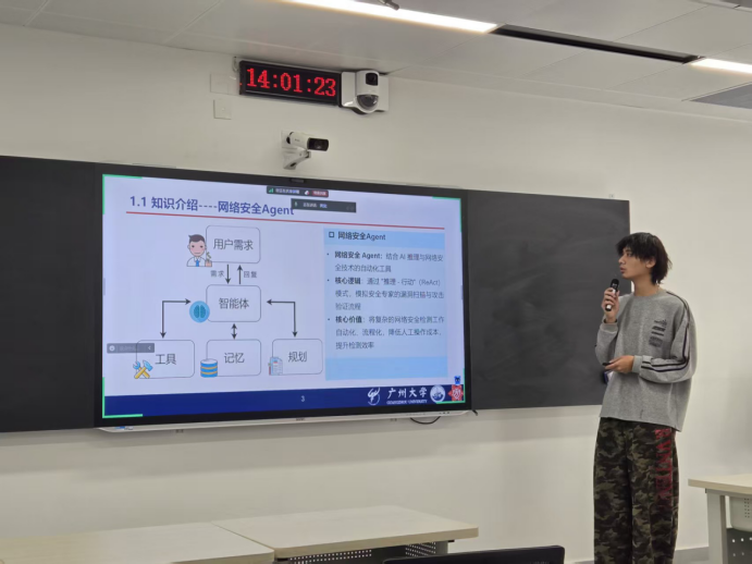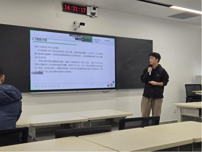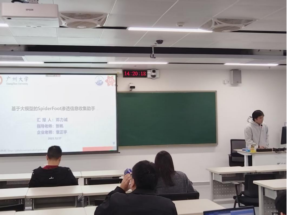 2025年12月17日 14:00-16:00,第104期方班演武堂在广州大学黄埔校区B2栋博信楼成功举办,绿盟班、海康班、天融信班、安天班、任子行班、启明星辰班和安恒班7个企业冠名教学班的企业导师,以及方班八期全体学生和网安学院部分老师参与了课堂教学。