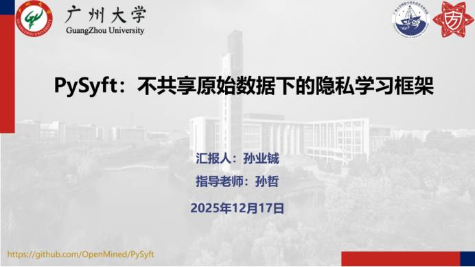 报告题目:PySyft:不共享原始数据下的隐私学习框架