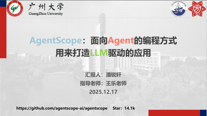 报告题目:AgentScope:面向 Agent 的编程方式,用来打造 LLM 驱动的应用