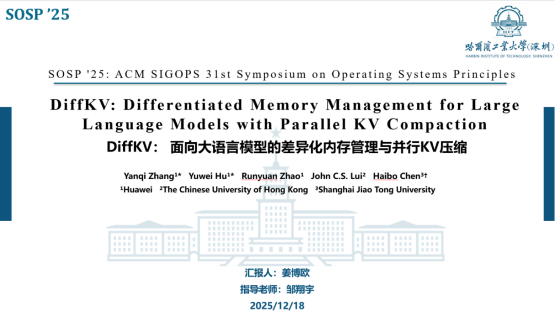 报告题目:【DiffKV: 面向大语言模型的差异化内存管理与并行KV压缩】