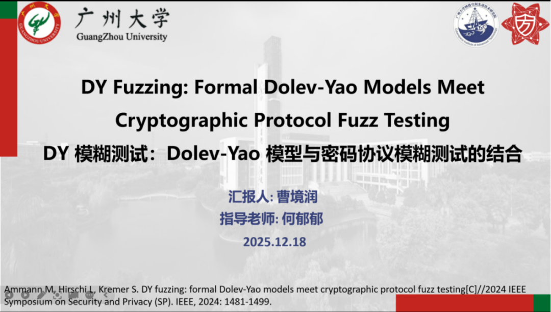 报告题目:【DY 模糊测试:Dolev-Yao 模型与密码协议模糊测试的结合】