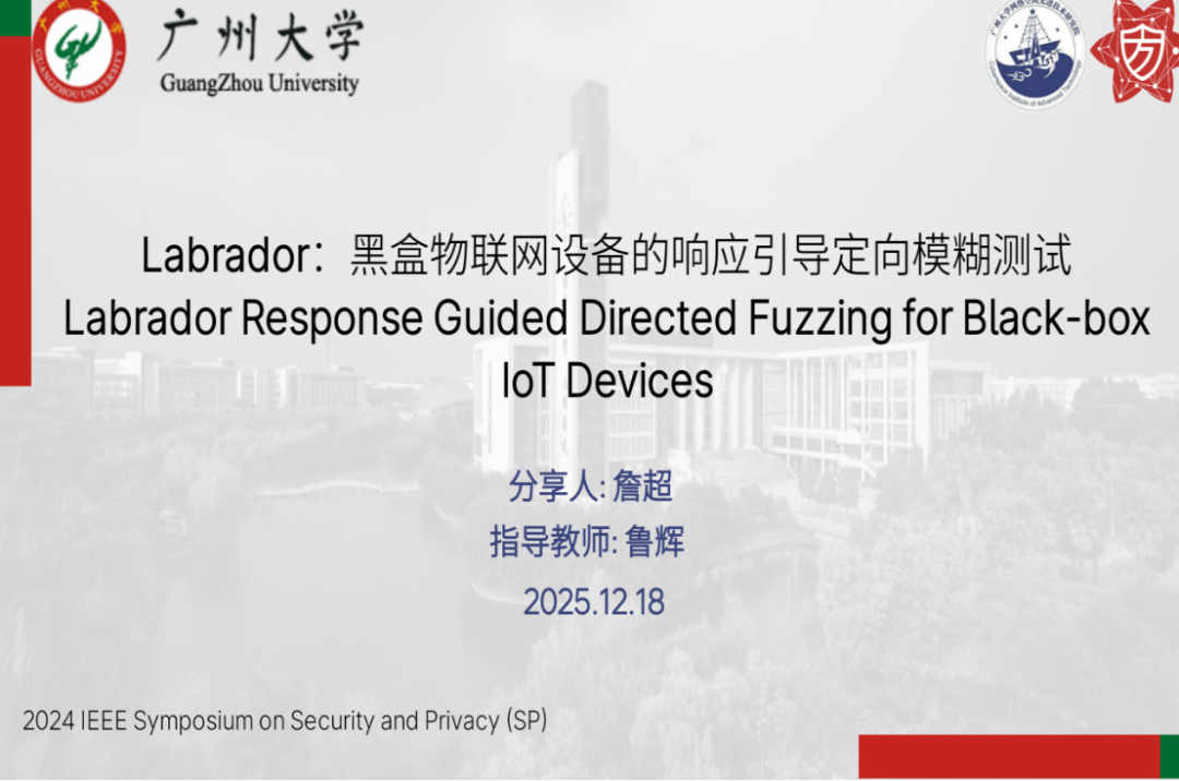 报告题目:【Labrador:黑盒物联网设备的响应引导定向模糊测试】