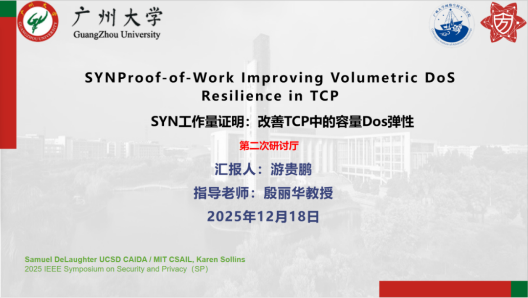 报告题目:【SYN工作量证明:改善TCP中的容量Dos抵抗力】
