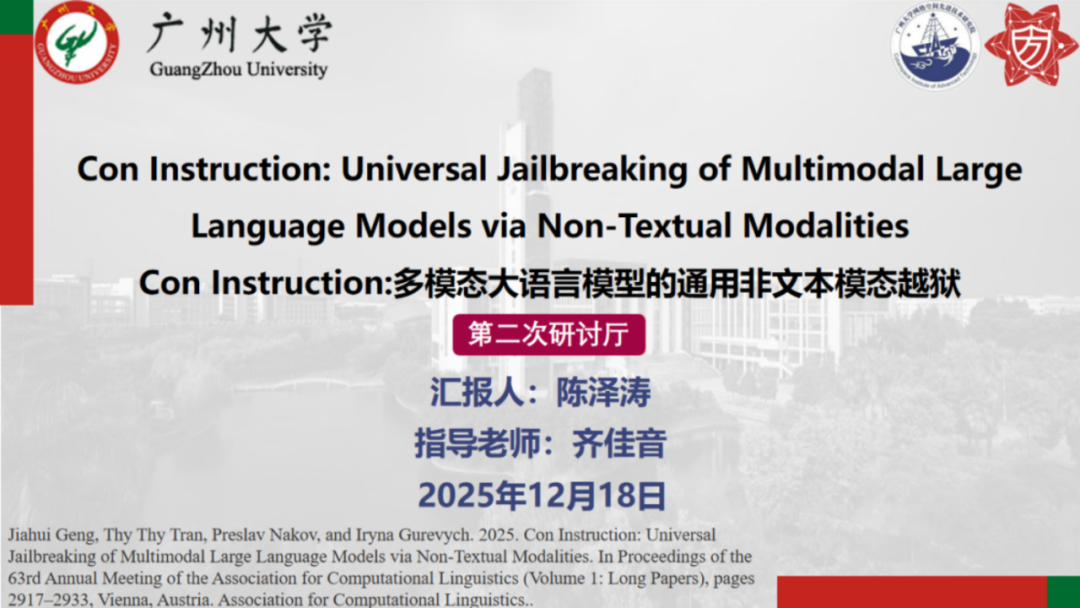 报告题目:【Con Instruction:多模态大语言模型的通用非文本模态越狱】