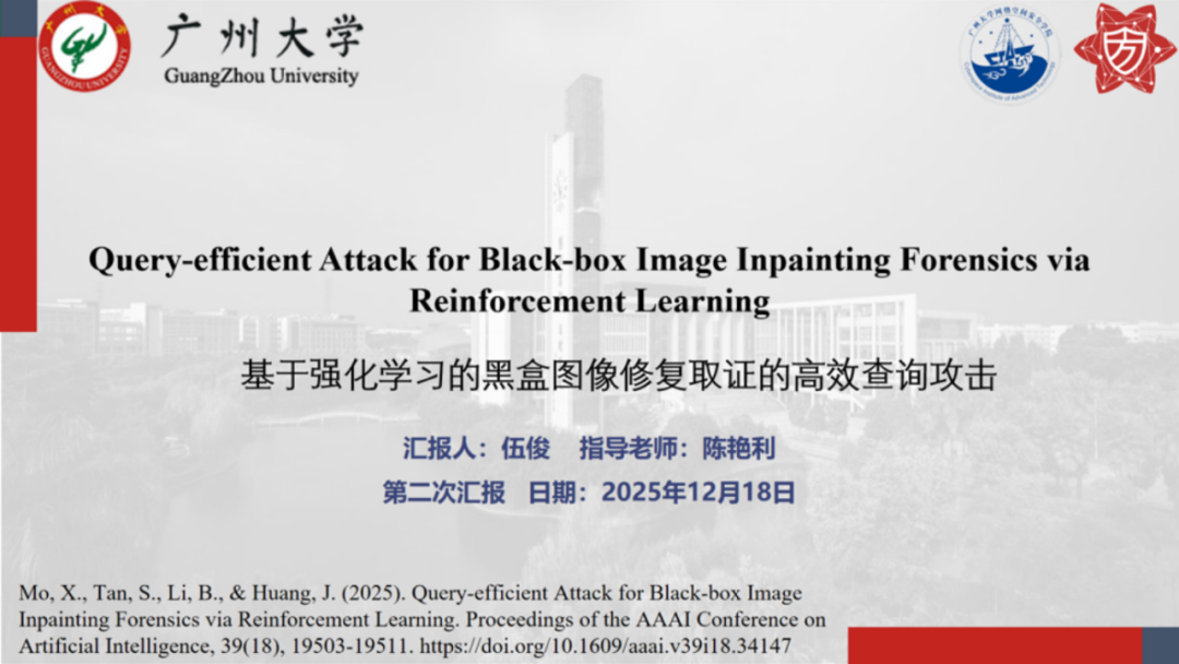 报告题目:【基于强化学习的黑盒图像修复取证的高效查询攻击】