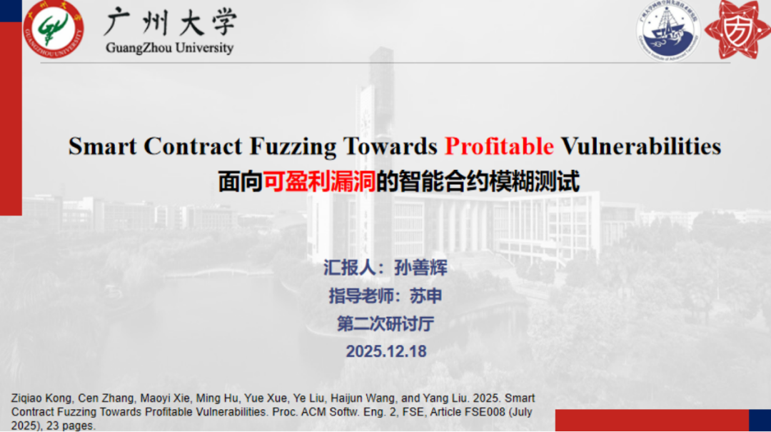报告题目:【面向可盈利漏洞的智能合约模糊测试】