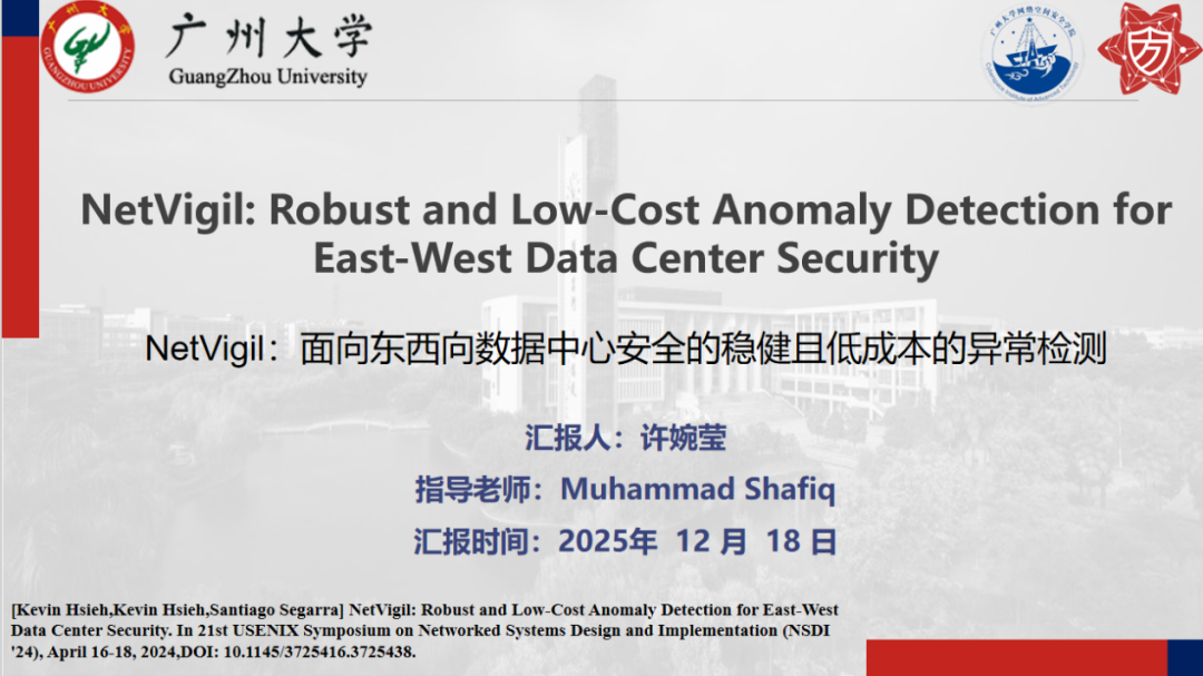 报告题目:【NetVigil:面向东西向数据中心安全的稳健且低成本的异常检测】
