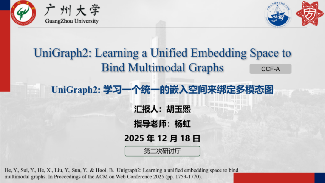 报告题目:【UniGraph2: 学习一个统一的嵌入空间来绑定多模态图】