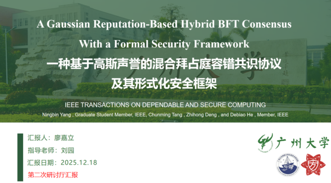 报告题目:【一种基于高斯声誉的混合拜占庭容错共识协议及其形式化安全框架】