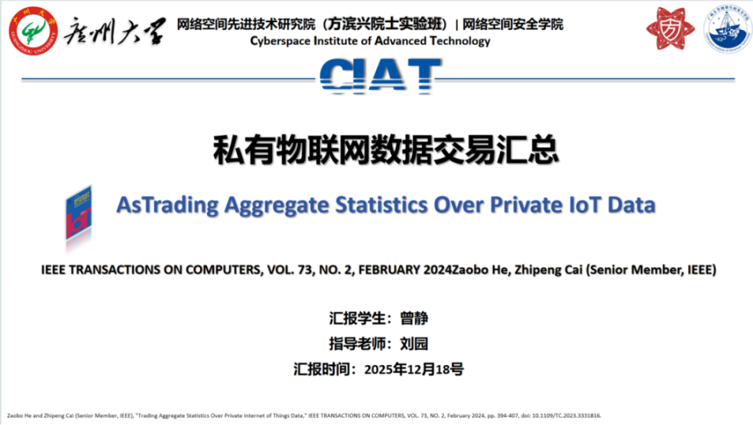 报告题目:【私有物联网数据上的聚合统计交易】