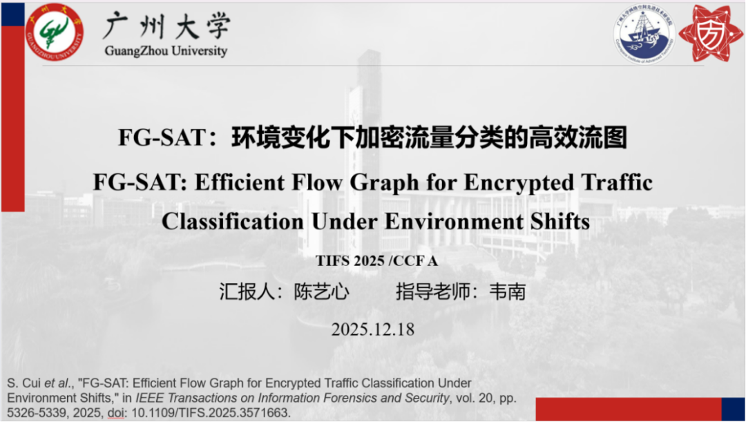 报告题目: 【FG-SAT:环境变化下加密流量分类的高效流图】