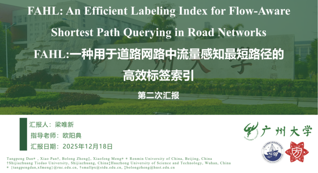 报告题目:【FAHL:一种用于道路网路中流量感知最短路径的高效标签索引】