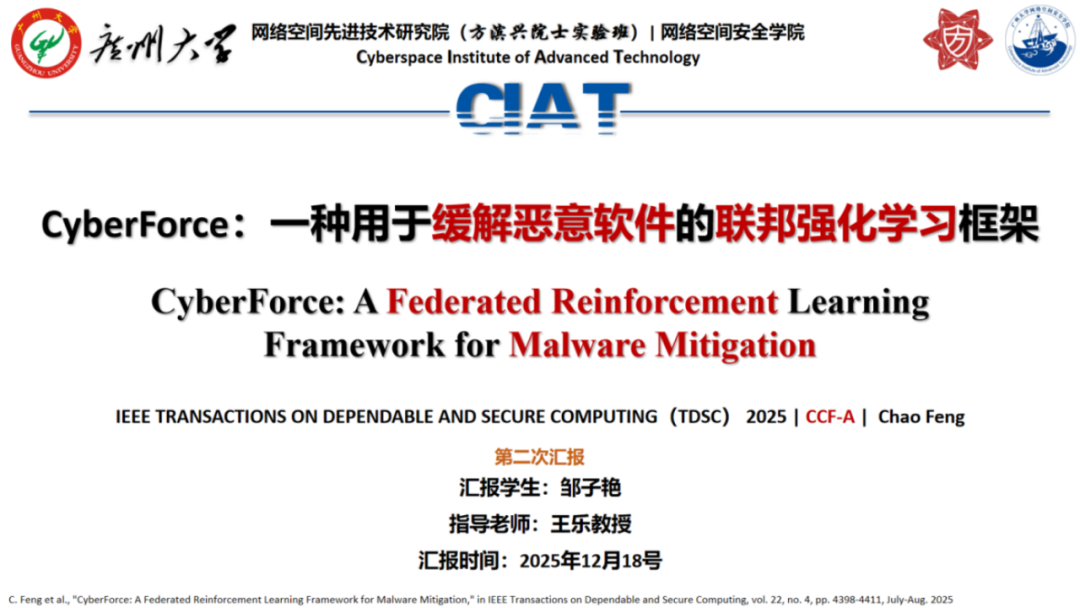 报告题目:【CyberForce:一种用于缓解恶意软件的联邦强化学习框架】